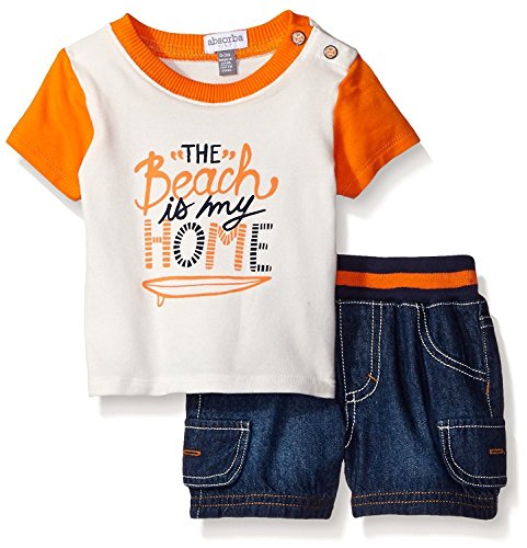 absorba Baby Newborn Boy's Surf Patrol Denim Short Set White/Navy 3/6 months [並行輸入品]