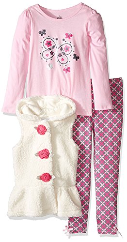 Kids Headquarters Little Girls' Toddler 3 Piece Sherpa Vest Pants Set Cream 3T [並行輸入品]