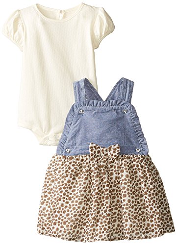 Nannette Baby Girls' Chambray Jumper with Printed Mesh Overlay Off White 12 Months [並行輸入品]