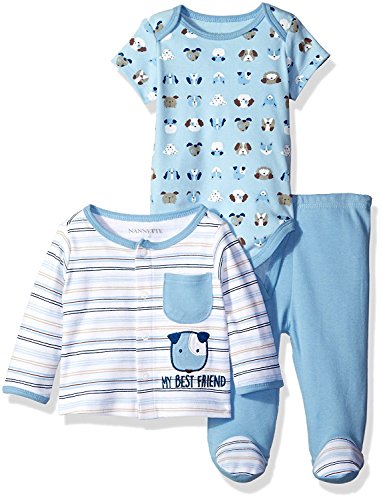Nannette Baby Boys' 3 Piece Cardigan Set with Creeper and Pant Animals Blue 6-9 Months [並行輸入品]
