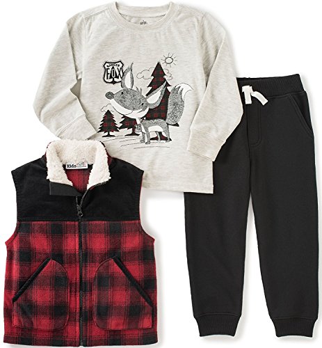 Kids Headquarters Baby 3 Pieces Vest Set-Sherpa Lined Collar Red 24 Months [並行輸入品]