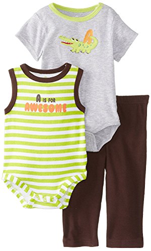 Watch Me Grow! by Sesame Street Baby-Boys Newborn 3 Piece Crocodile Creeper Set Light Grey Heather 3-6 Months [並行輸入品]