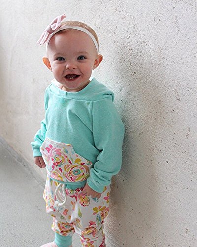Gshoots Baby Girls Autumn Floral Hoodie+ Floral Pant Set Leggings 2 Piece Outfits (18-24 Months Blue) [並行輸入品]