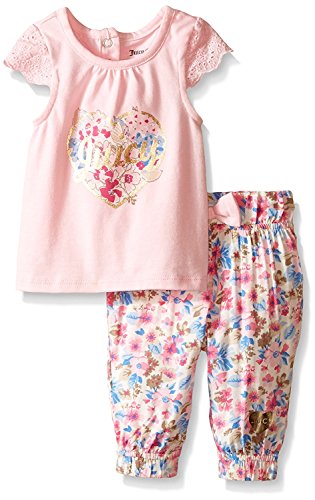 Juicy Couture Baby Girls' Jersey Top with Eyelet Trim and Challis Pants Pink 0-3 Months [並行輸入品]