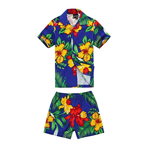 Boy Hawaiian Shirt and Shorts 2 Piece Cabana Set in Blue with Giant Yellow Hibiscus 6 Year Old [並行輸入品]