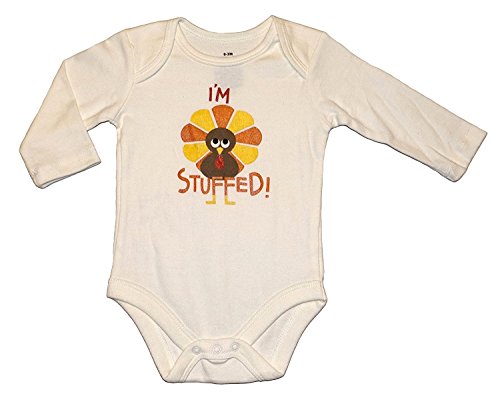 Assorted Turkey Baby Boys & Girls Thanksgiving Long Sleeve Bodysuit Outfit (Newborn Off White - I'M STUFFED) [並行輸入品]