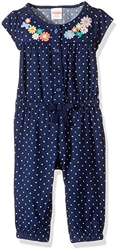 Gymboree Baby Toddler Girls' Dot Romper with Floral Detail Bulldozer Blue 12-18 Months [並行輸入品]
