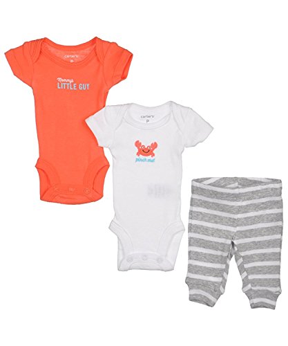 Carter's 3-pc Pinch-Me Mommy's LITTLE GUY Bodysuits & Pants Set (Salmon White Gray - 3 Months) [並行輸入品]