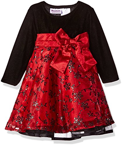 Blueberi Boulevard Baby Girls' Long Sleeve Flocked and Glitter Emb Overlay Dress Red 3/6 Months [並行輸入品]