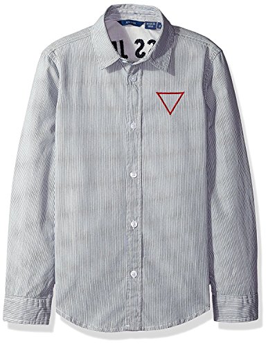 GUESS Big Boys' Long Sleeve Buttoned Collared Shirt Sky Blue/White Stripe 12 [並行輸入品]