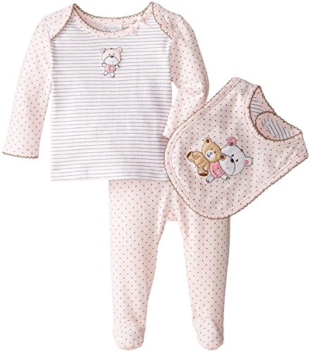 ABSORBA Baby-Girls Newborn Sister Bears 3 Piece Footed Pant Set Pink 0-3 Months [並行輸入品]