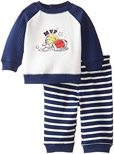 Little Me Baby-Boys Newborn Sports Quilted Pant Set Navy Stripe 6 Months [並行輸入品]