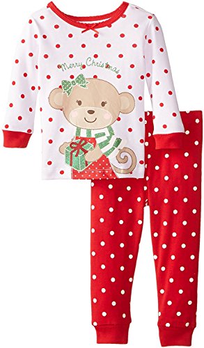 Little Me Baby Girls' Monkey 2 Piece Cotton Pajamas White/Red 18 Months [並行輸入品]