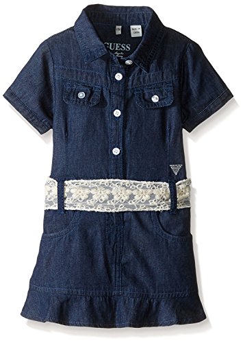 GUESS Baby Girls' Denim Dress with Lace Dark Chambray 12 Months [並行輸入品]
