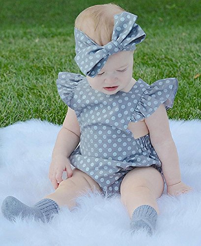 Ma&Baby Baby Girls Kid Lace Romper Backless Sunsuit Ruffle Sleeve Dress (6-12 Months Polka dot) [並行輸入品]