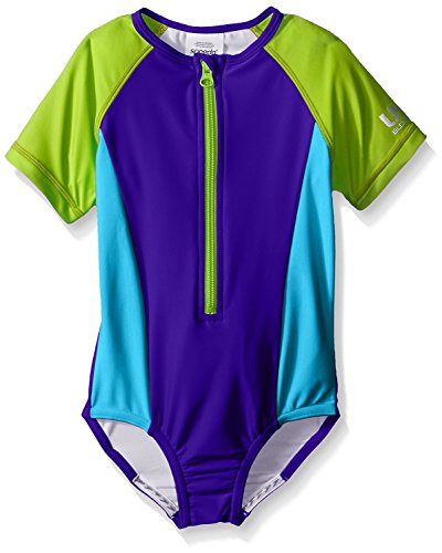 Speedo Little Girls Short Sleeve Zip 1 Piece Deep 6 [並行輸入品]
