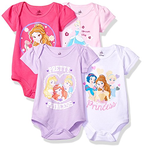 Disney Baby Girls' Princess 4-Pack Short Sleeve Bodysuit Hot Pink/White/Lilac/Light Pink 0-3M [並行輸入品]