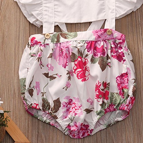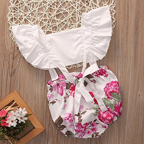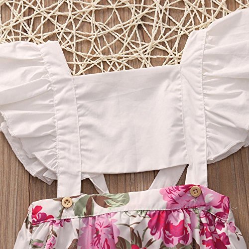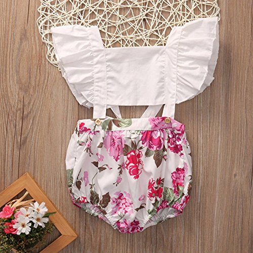 GRNSHTS Baby Girls Flower Print Buttons Ruffles Backless Romper Bodysuit (90 cm / 12-18 month Pink & red flower) [並行輸入品]