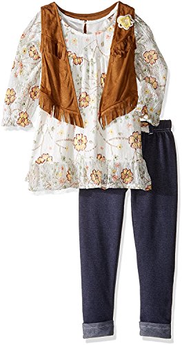 Nannette Little Girls' 3 Piece Legging Set with Printed Lace Top and Suede Vest Off/White 6X [並行輸入品]