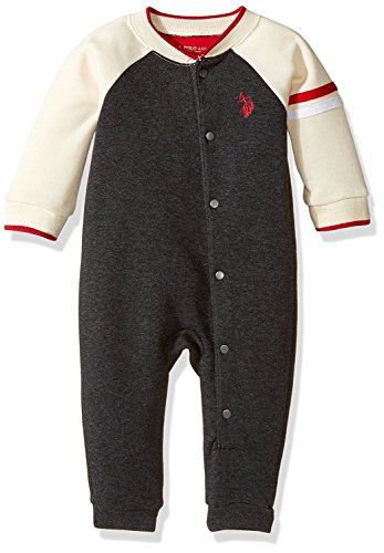 U.S. Polo Assn. Baby Boys' Fleece Varsity Romper Black Heather 3-6 Months [並行輸入品]