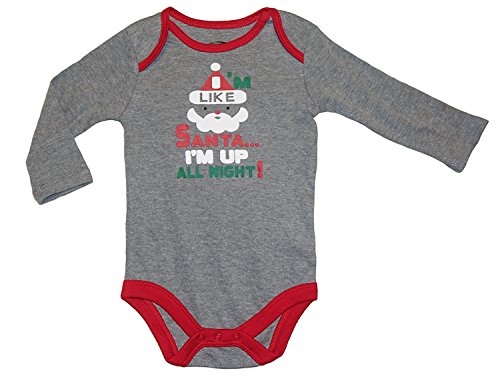 Assorted Santa Reindeer Baby Boys & Girls Christmas Bodysuit Dress Up Outfit (3-6 Months Grey - I'm LIKE SANTA... I'M UP ALL NIGHT) [並行輸入品]