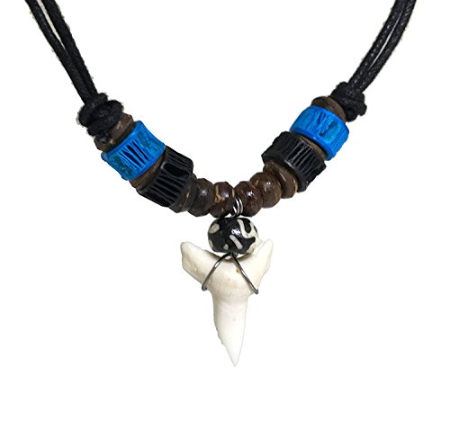 Shark Tooth Rasta Short Beads Necklace Handmade Hawaiian Style Beach Boy Men (Bone Blue Brown) [並行輸入品]