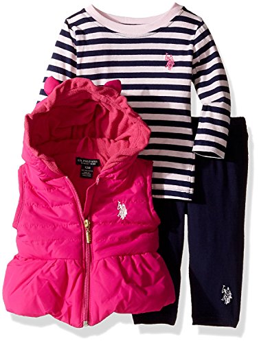 U.S. Polo Assn. Baby Girls' 3 Piece Puffer Vest Long Sleeve Top and Legging Set Very Berry 6-9 Months [並行輸入品]