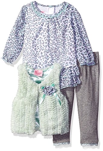 Nannette Baby Girls' 3 Piece Curly Faux Fur Vest and Legging Set Green 24 Months [並行輸入品]