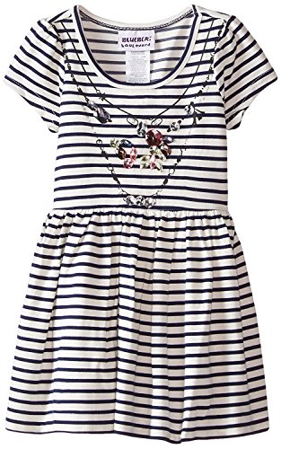 Blueberi Boulevard Baby Girls' Knit Striped Dress Jewel Necklace Cream 12 Months [並行輸入品]
