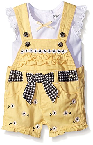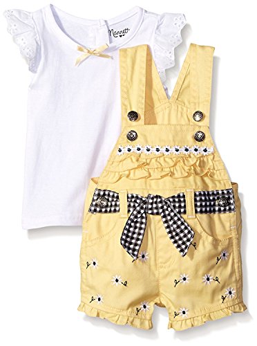 Nannette Little Girls 2 Piece Short Sleeve Shirt and Shortall Set Yellow 3-6 Months [並行輸入品]
