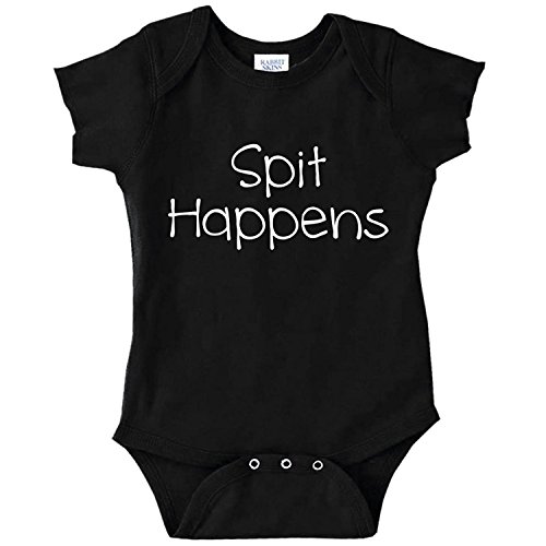 Funny Baby Bodysuit Infant Spit Happens (BLACK 6 MONTHS) [並行輸入品]