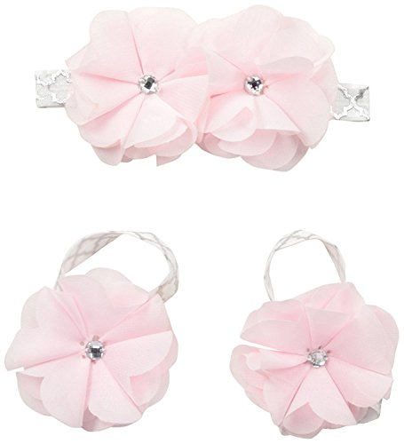 Toby & Company Baby 2 Piece Chiffon Gem Flower Headband and Barefoot Sandal Set Light Pink Newborn Infant Blended [並行輸入品]