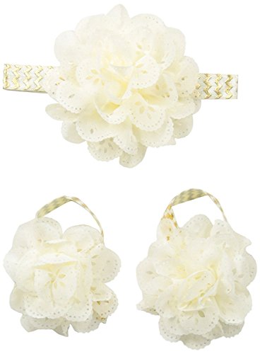 Toby & Company Baby 2 Piece Eyelet Flower Soft Headband and Barefoot Sandal Set Ivory Newborn Infant Blended [並行輸入品]