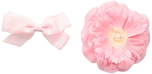 Toby & Company Toddler Girls 2 Piece Flower and Bow Fastener Clip Set Light Pink One Size [並行輸入品]