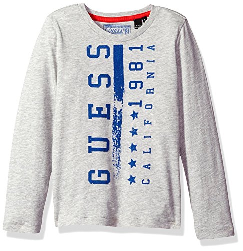 GUESS Little Boys' Long Sleeve Tee Shirt with Vertical Graphic Light Heather Grey 5 [並行輸入品]