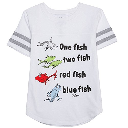 Dr. Seuss Girls' Big Girls' Fishy Cover T-Shirt Shirt White/Heather Grey X-Large [並行輸入品]
