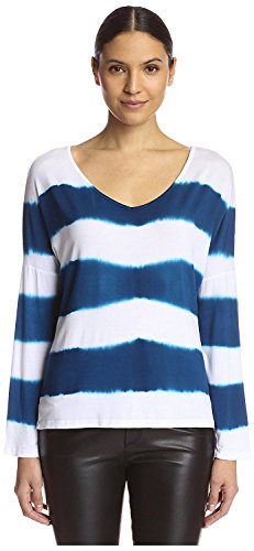 James & Erin Women's Stripe Tie Dye Tee Teal/White M [並行輸入品]