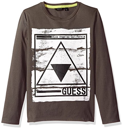 GUESS Big Boys' Long Sleeve Crackle Print Logo Tee Shirt Suede Grey 12 [並行輸入品]