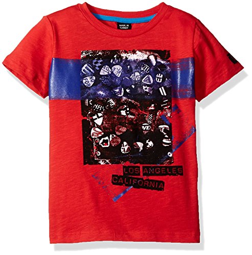 GUESS Little Boys' Short Sleeve Guitar Pic Graphic Tee Shirt Dressy Ocean Coral 6 [並行輸入品]