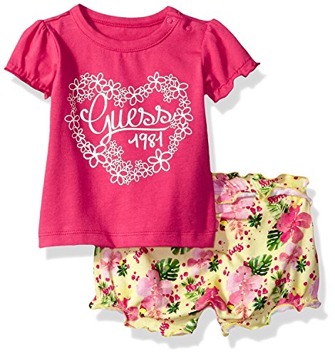 GUESS Baby Girls' Set Sleeve Graphic T-Shirt and Shorts Electric Rose 6/9M [並行輸入品]