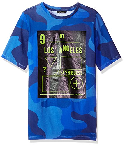 GUESS Big Boys' Short Sleeve Allover Tee with Slick Print Front Graphic All Over Blue/Black 16 [並行輸入品]