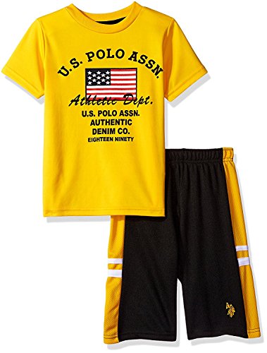 U.S. Polo Assn. Little Boys' Interlock Graphic T-Shirt with Close Hole Mesh Sport Short Gold 7 [並行輸入品]