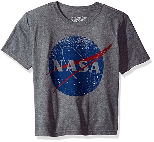 NASA Big Boys' Distressed Logo Short Sleeve T-Shirt Heather Grey M (10/12) [並行輸入品]
