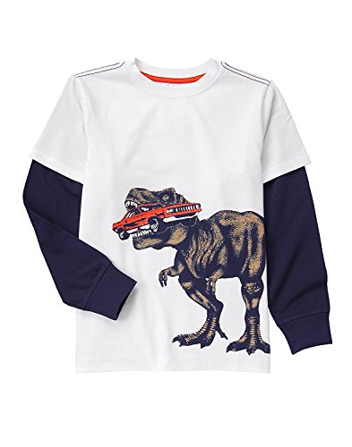Gymboree Big Boys' Long Sleeve Trex Tee White 6 [並行輸入品]