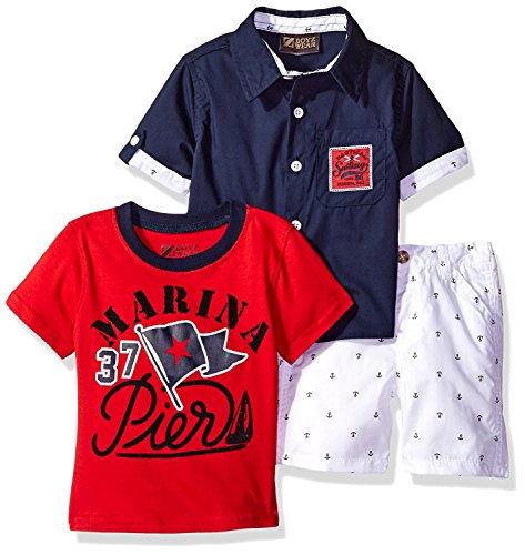 Nannette Baby Boys' 3 Piece Button Down Shirt Tee and Short Navy 18M [並行輸入品]