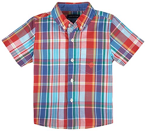 Andy & Evan Andy & Evan Boys Madras Short Sleeve Button-down Shirt - Toddler Red 5Y [並行輸入品]