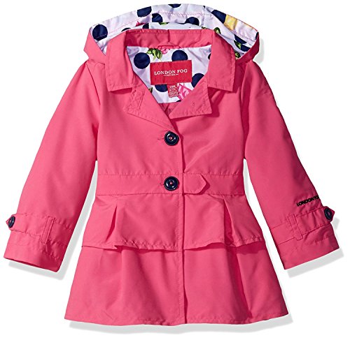 London Fog Baby Girls' Ruffle Bottom Trench Jacket with Removeable Hood Pink 12M [並行輸入品]
