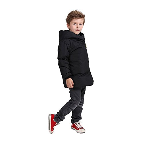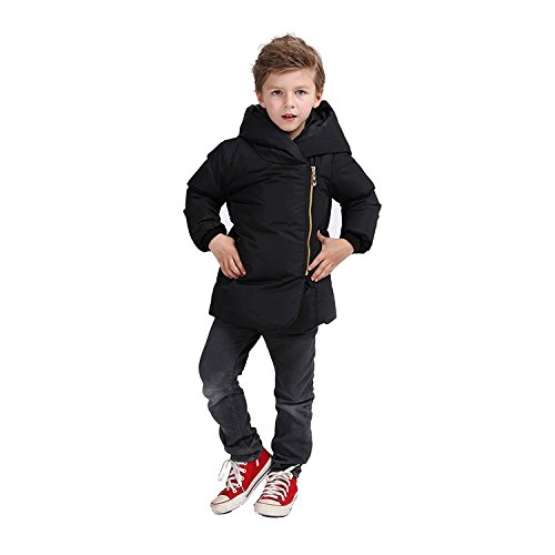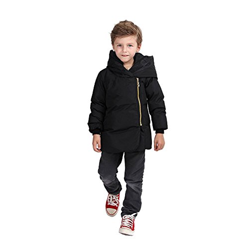 FOUNDO Kids Boys Girls Hooded Coat Winter Warm Down Jacket Light Weight Zipper 130(5-6T) Black [並行輸入品]