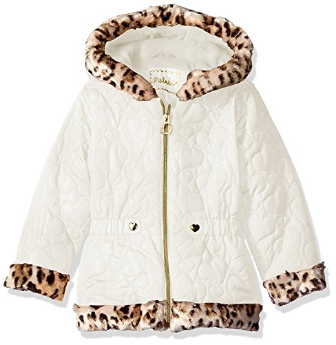 Pistachio Little Girls' Toddler Heart Quilted Jacket with Faux Fur Vanilla 4T [並行輸入品]