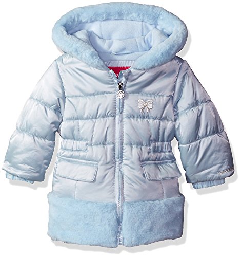 London Fog Baby Girls' Matte Shimmer Satin Faux Fur Bottom and Hood Jacket Blue 18 Months [並行輸入品]
